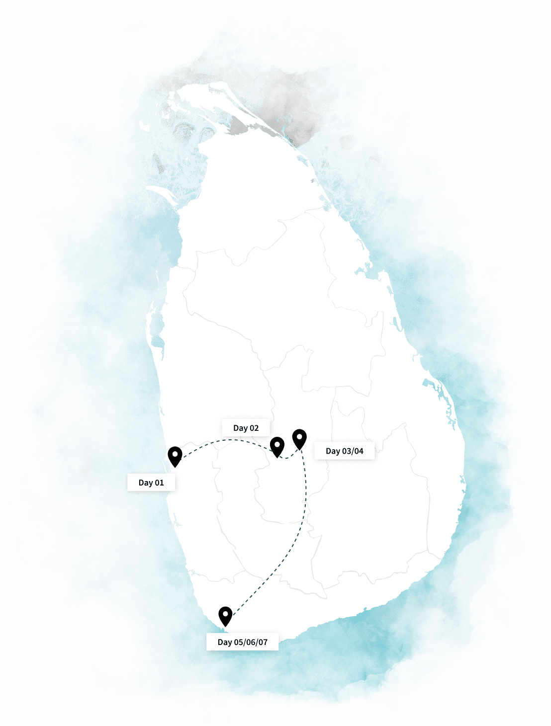 Touch down in Sri Lanka and settle into the tranquil ambiance of Villa Hundira, a secluded retreat near Negombo Lagoon. Surrounded by still waters and coconut palms, the villa offers the perfect setting to unwind after your journey. Enjoy a light dinner and perhaps a short sunset meditation on the pier before drifting into restful sleep.